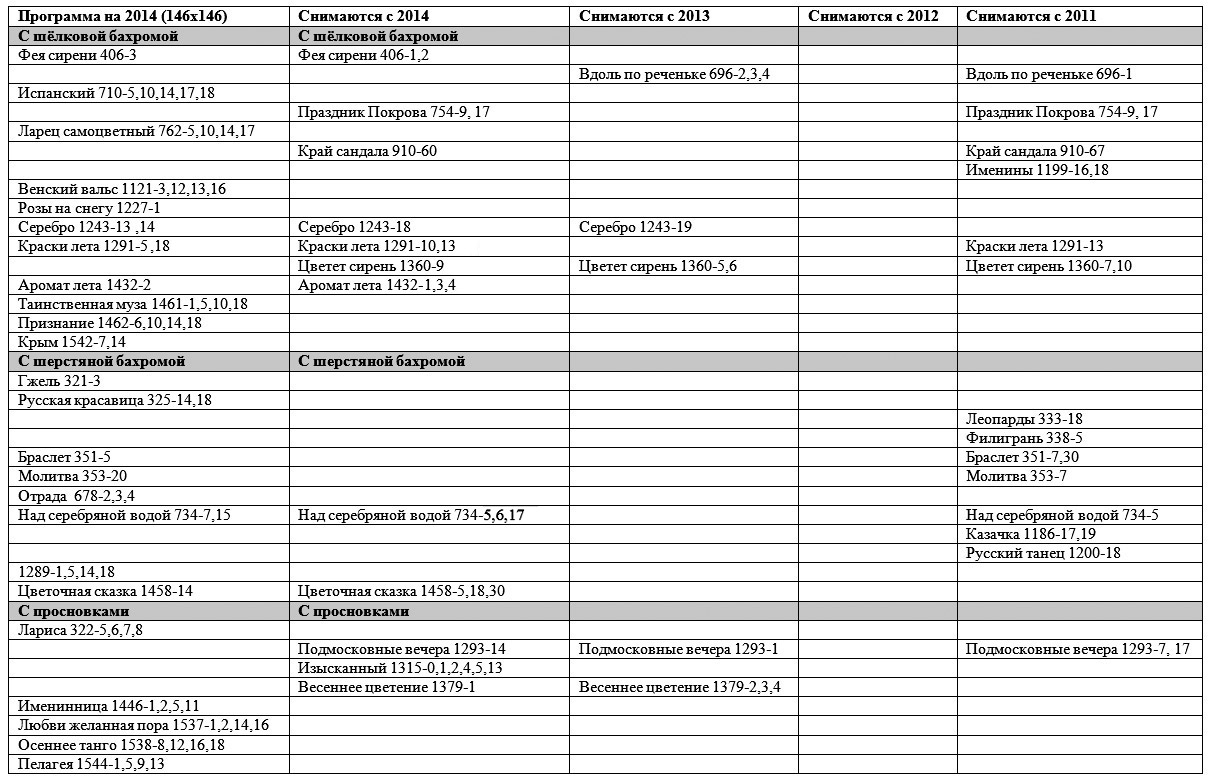 Nataly, спасибо.Nataly писал(а):На сайте платки.ру забиваете в поиске ассортиментный номер и смотрите, какой платок в каком колорите будет выпускаться
