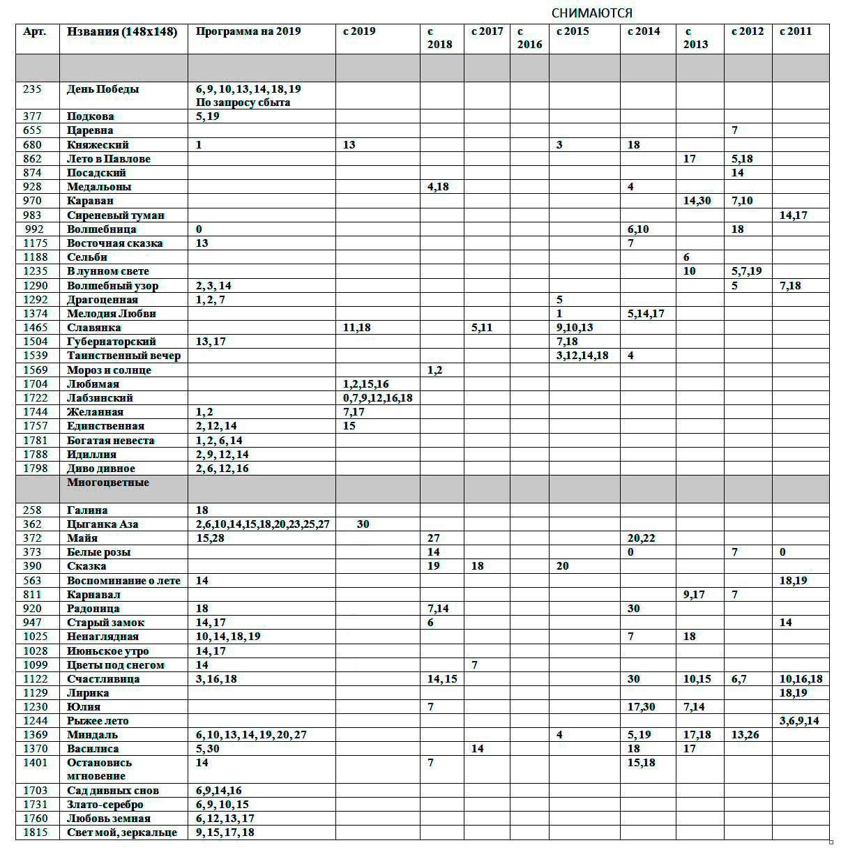 Ассортиментная программа 2019г. с вылетом по годам