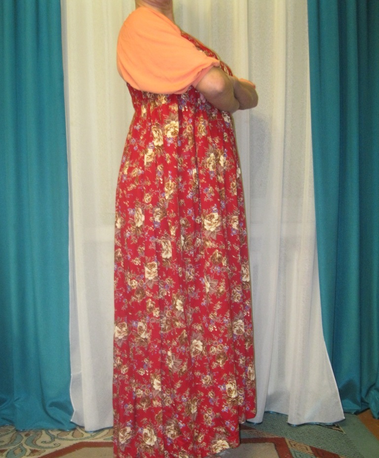 Тамарочка, спасибо, сосед хороший, молодой пацан 25 лет, исполнял все мои просьбы по фотографированию, "лик" кажется на месте, но он не должен отвлекать от сарафана. Точно, сарафан похож на Цветочную сказку, у меня есть чёрный вариант ея. Ткань сарафана - венгерский штапель.