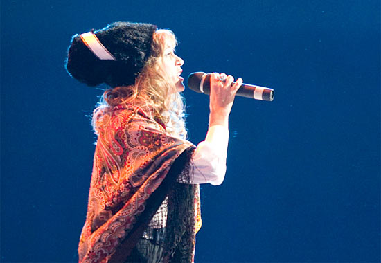 На первом фото певица опрометчиво выставила изнанку шали - непорядок!