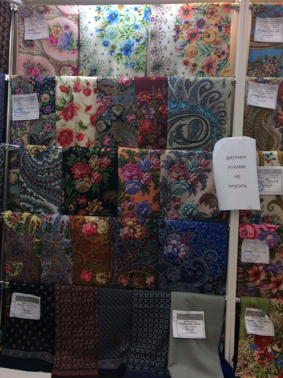 Я купила на подарки парочку палантинов Город золотой, они там всех расцветок, но фото этой витрины я не сделала почему-то