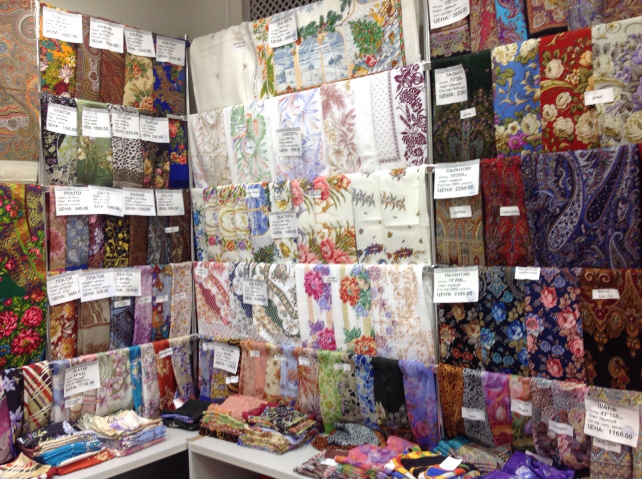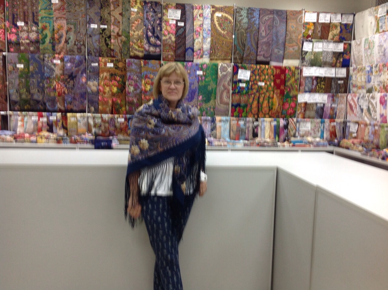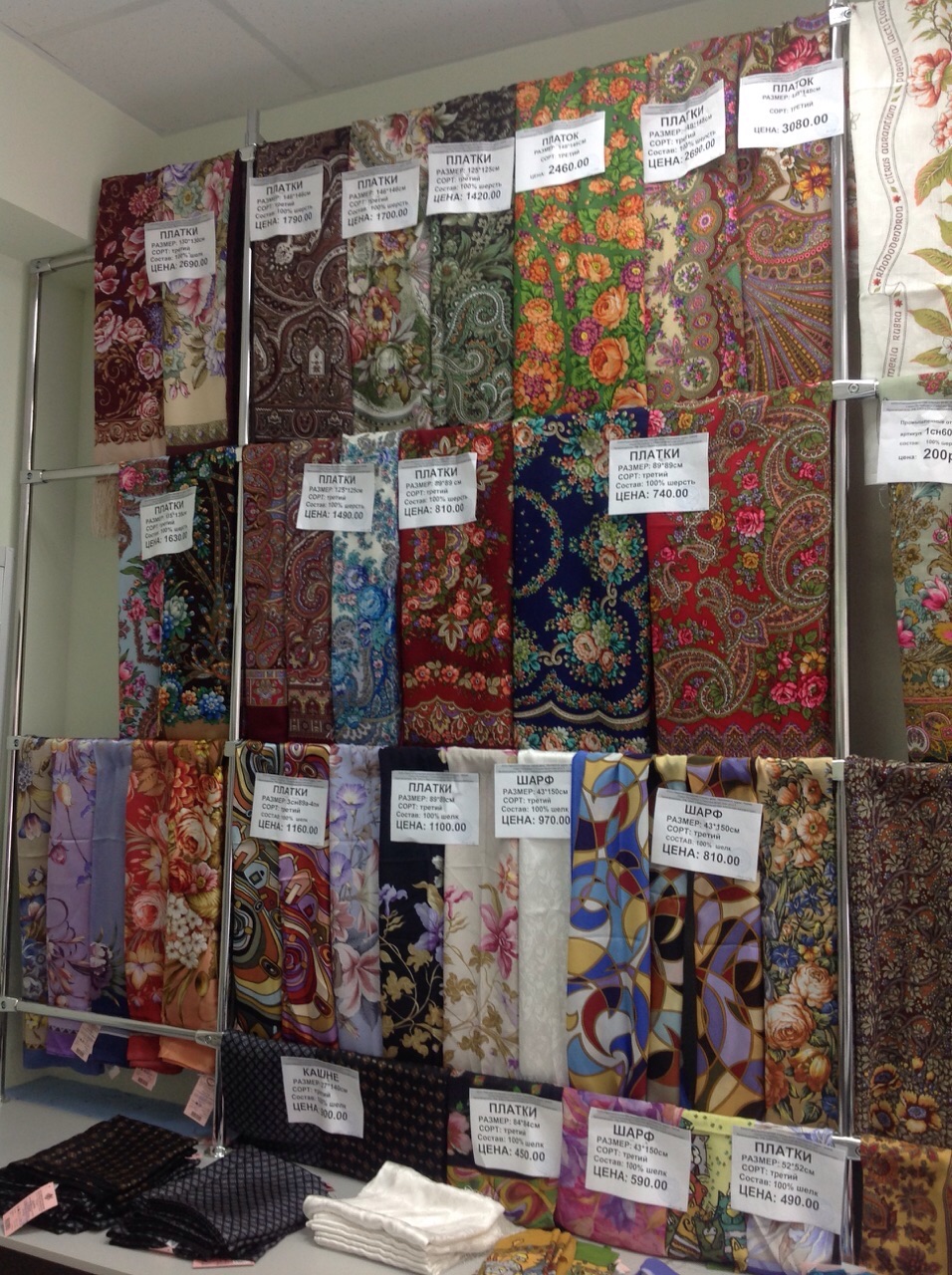 Добавлю фото витрин с шалями в основном отделе.