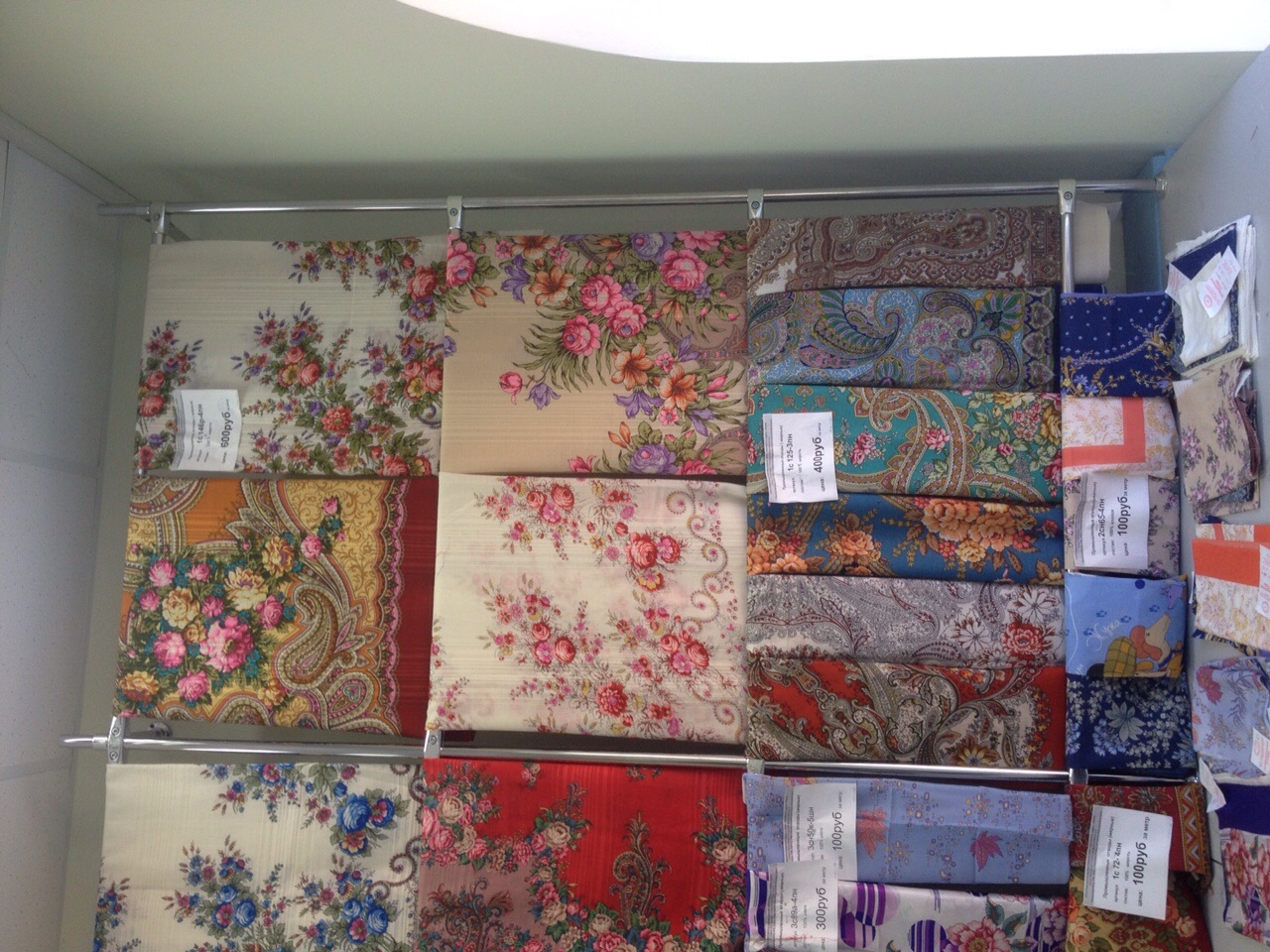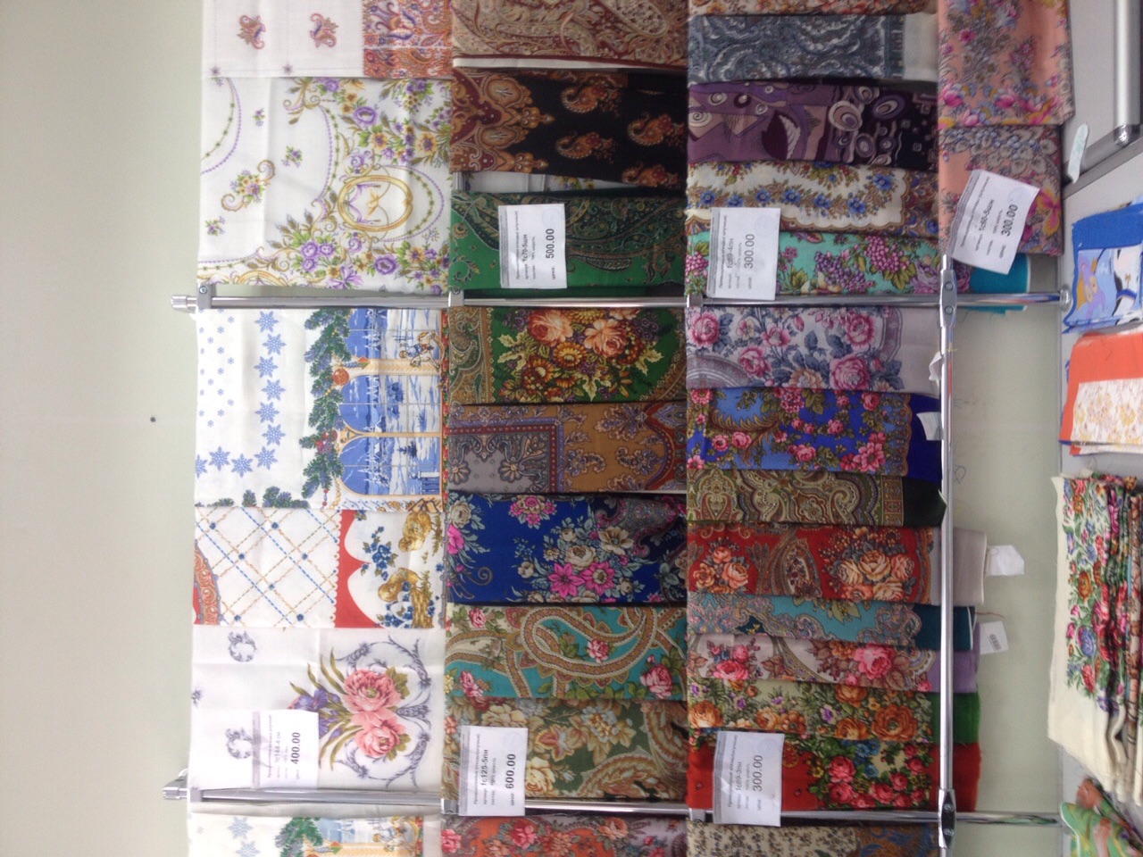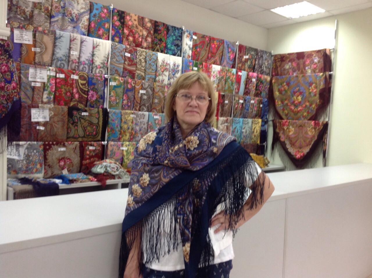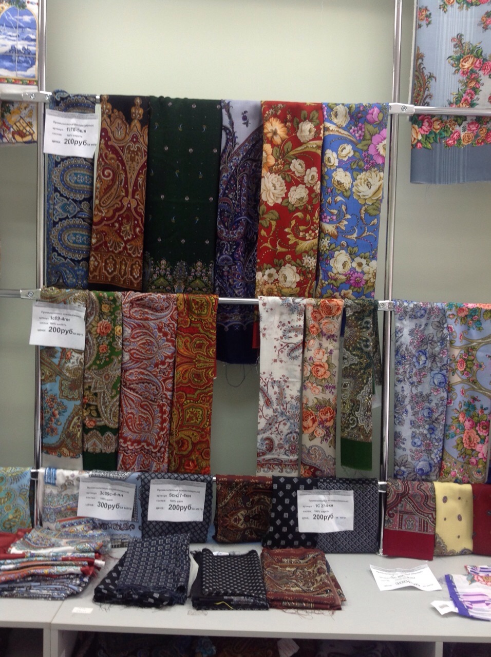 Добавлю фото витрин с шалями в основном отделе.