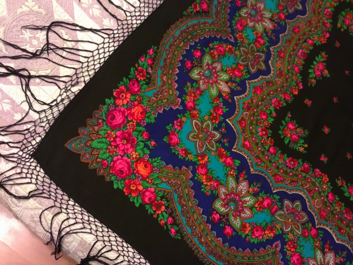 ИМХО, разумеется, но, во-первых, у меня не вызывает чувство внутреннего протеста и сам рисунок, а даже, где-то, наоборот: нравится орнамент вдоль каймы, красивая серединка платка в лучших традициях ППМ.