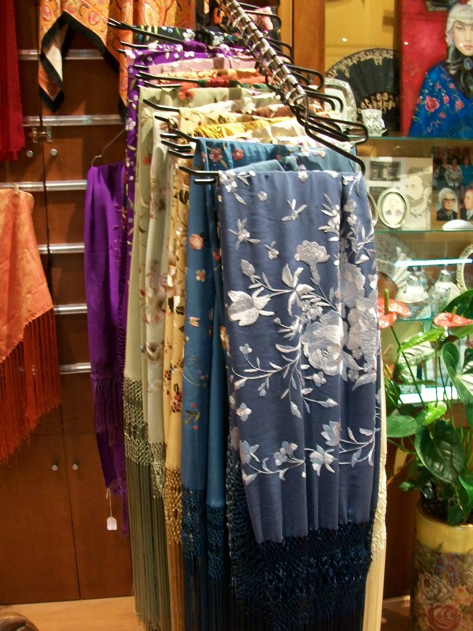 Хочу показать свой мантон. Купила в Севилье в результате многочасовой примерки по-моему всего магазина. Терзали сомнения, насколько это "этнический" элемент одежды, насколько она обязывающая, найду ли я повод, куда ее надеть? Не буду ли я Дульсинеей Мценского уезда? По многим из этих соображений я решила выбрать шаль менее традиционного цвета. Она у меня зелёная, немного мельче стандарта, что компенсируется кистями и ее общей управляемостью. В результате ношу часто, когда есть настроение принарядиться. Она прекрасна и с маленьким черным платьем, и с футболкой.