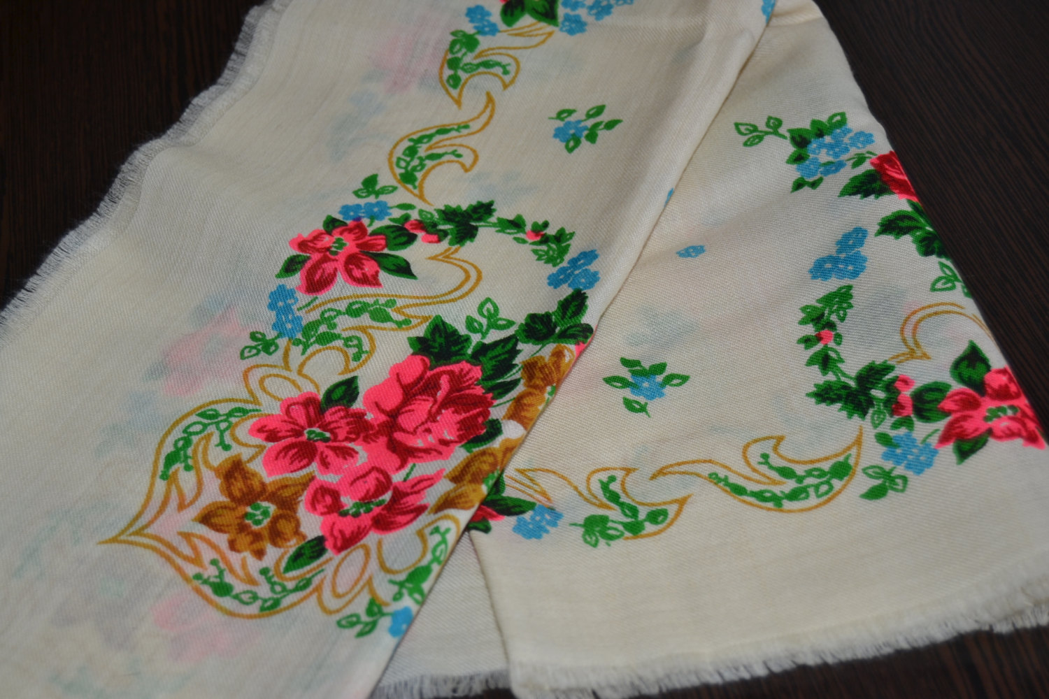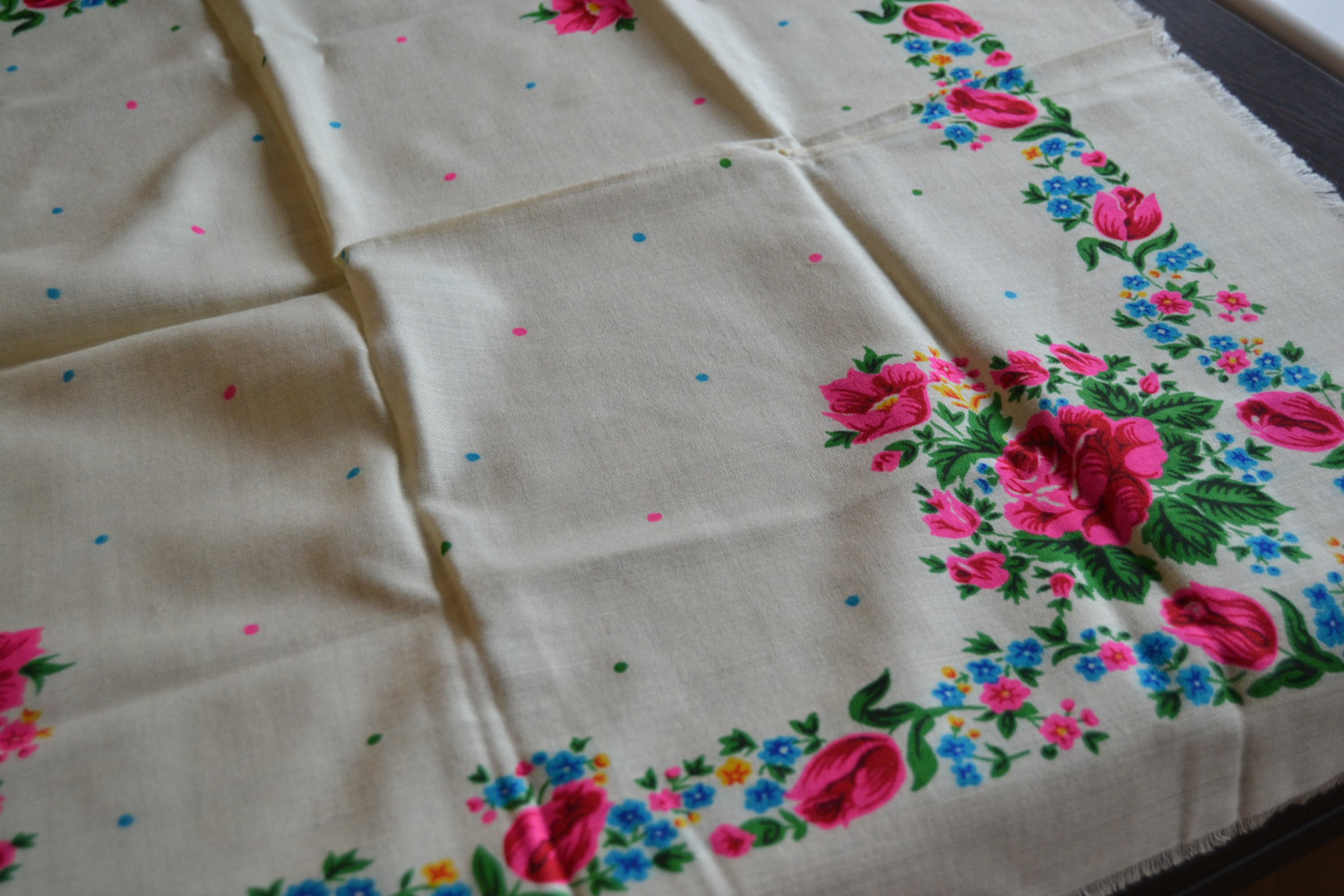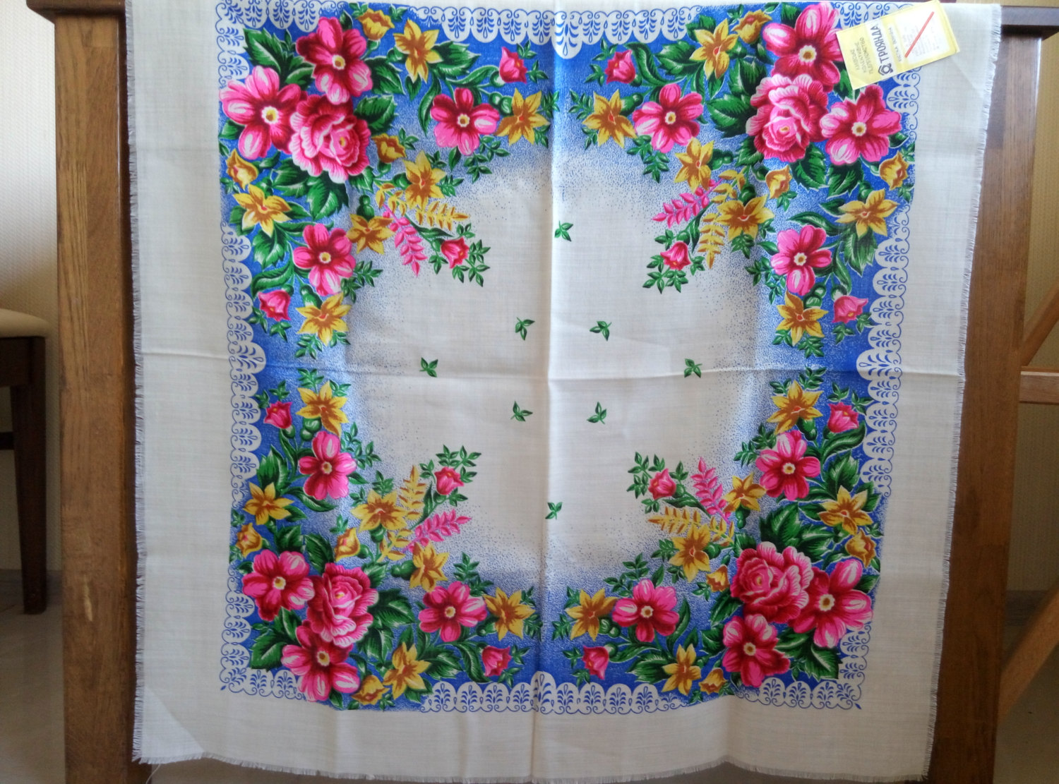 Другой платок аналогичного колорита с этикеткой киевской фабрики ТРОЯНДА