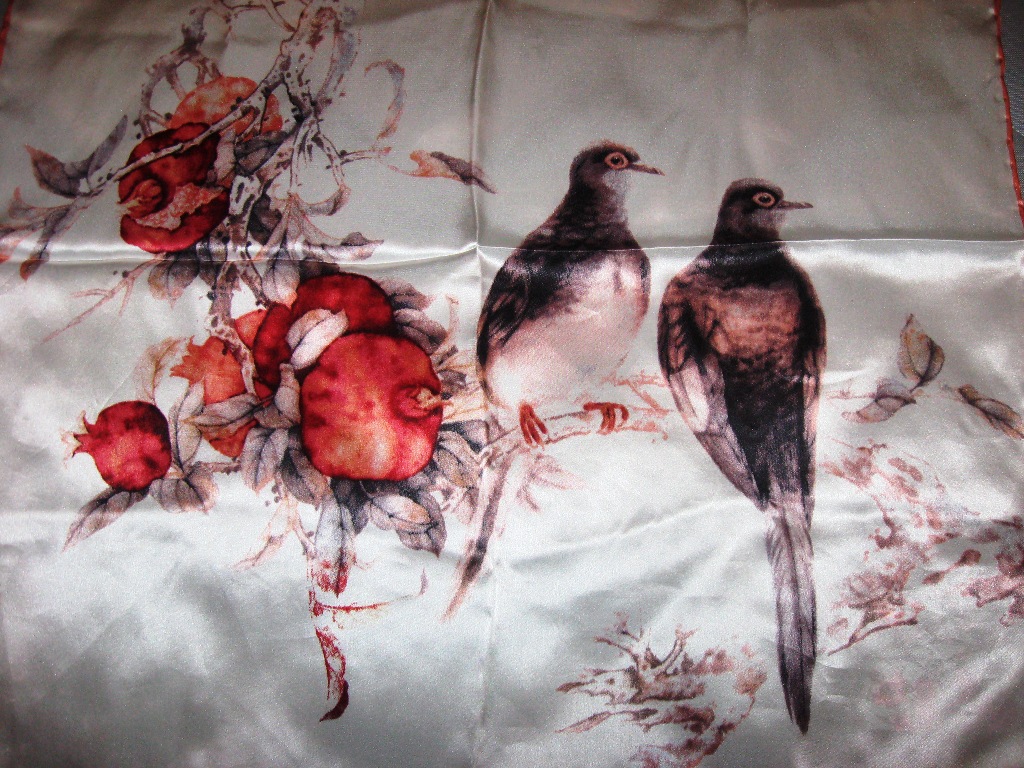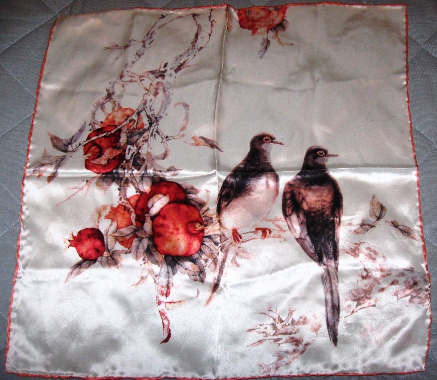 Tapya S писал(а):На днях заходила в Glance не смогла устоять перед этим платочком. Китай, натуральный шёлк, обработка края - "макаронина", акварельный рисунок