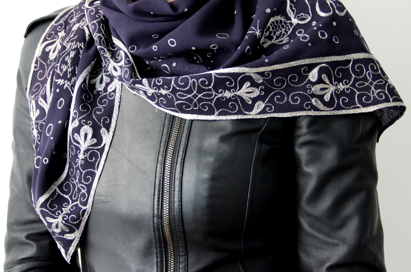 Шифоновый тёмно-синий платок "Созвездия" с вышивкой серебряными металлизированными нитками. "Готишный" такой. Размер 90x90 см.