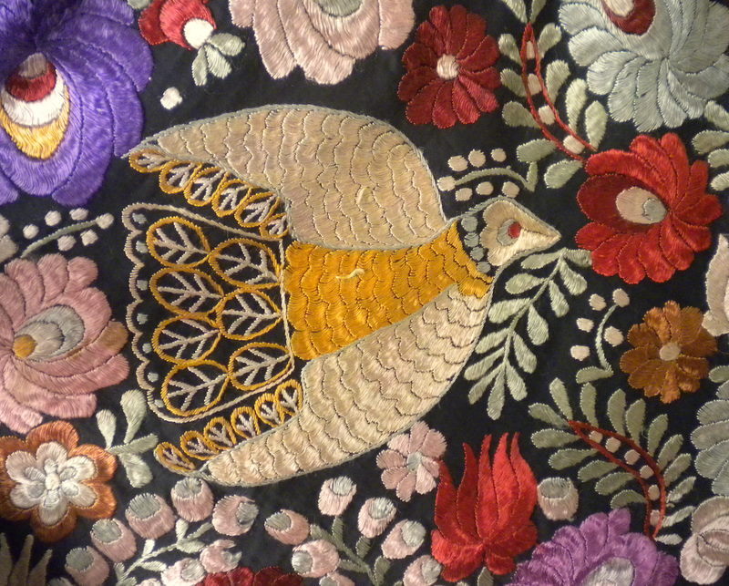 Вот еще одна, как мне кажется, интересная шаль того же периода (1920-е). На этот раз из Венгрии. Ручная вышивка шелком по хлопку. Шаль весит около полутора килограмм