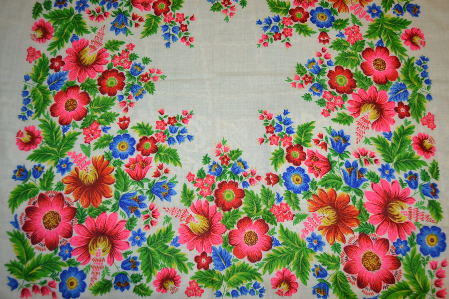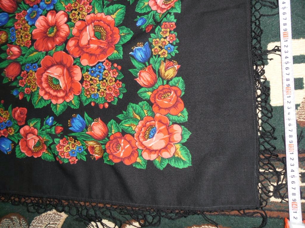 Вот навскидку, теплый родамин+сиреневый и холодный родамин+синий (коричневый в листьях встречается редко): Это касается белопольных платков до метра. Черных платков с этикеткой мне не встречалось, так что тут уже исключительно домыслы. Я бы не относила к ППМ платки с четким, закрытым контуром и в силу этого - с более декоративным рисунком. Вот как тут: В отличие от белопольных, ткань черных платков бывает плотнее, иногда с более грубым переплетением нитей. Возможно, они и не украинские, или выпускались в разные периоды. Хотелось бы поймать парочку с этикеткой, чтобы сравнить.