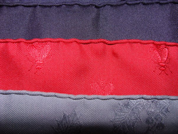 И вот так выглядит край платка. На фото платки Hermes. Это эталон круглого края. Итальянские и все остальные брендовые подшивают точно так же, но на левую сторону.
