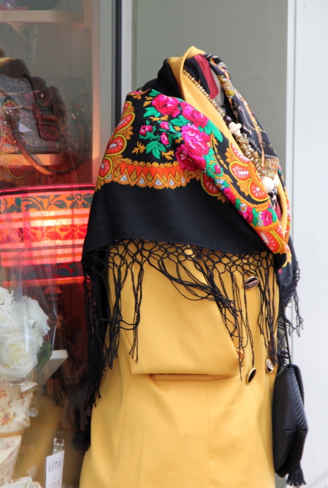 На фото в основном платки с рисунком, известным нам как «Маков цвет».
