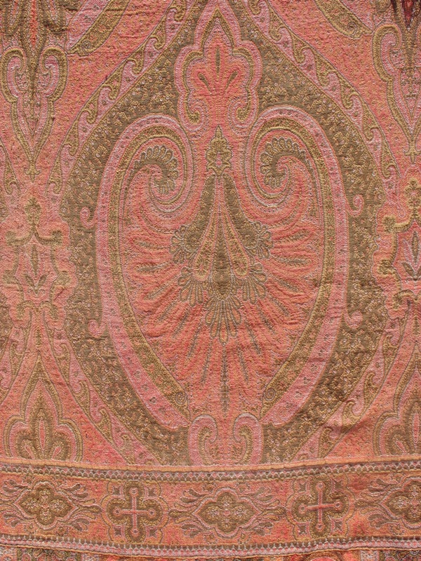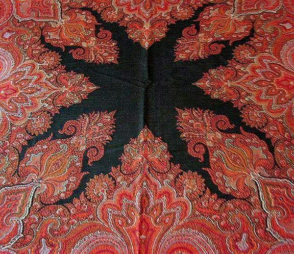 Совершенство совершенством, но иногда случались любопытные колористические протуберанцы. Нашла вот такую французскую шаль 1850 года. К цветам и сочетаниям оттенков в нарядах тогда относились довольно трепетно - и вдруг такая мундирная гамма. Занятно..EleMax писал(а):Цвета, оттенки, орнамент -- все плавно перетекает и дополняет друг друга