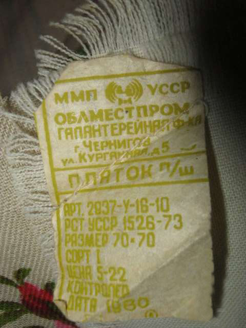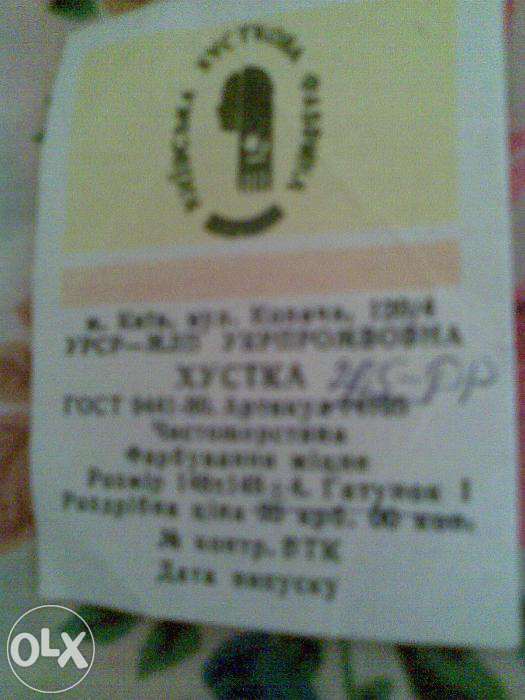 Оказывается, была еще фабрика на Украине, которая печатала платки, в Ивано-Франковске. Судя по этикете на этом платочке.