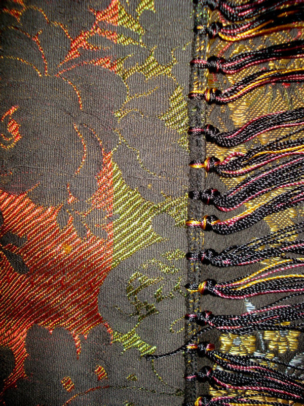 Веселенькая скатерка! На самом деле, я часто вижу в интернете шали, которые из-за гигантских размеров довольно трудно отличить от скатертей (и наоборот). Особенно это относится к вышитому шелку и жаккардовым вещицам... Думаю (судя по дефектам), иногда их так и использовали, на столах.