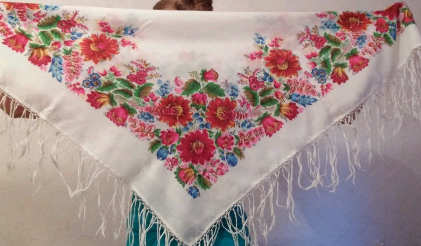 У украинского продавца платок в стиле петриковской росписи, 97х97 см.