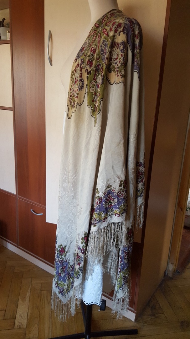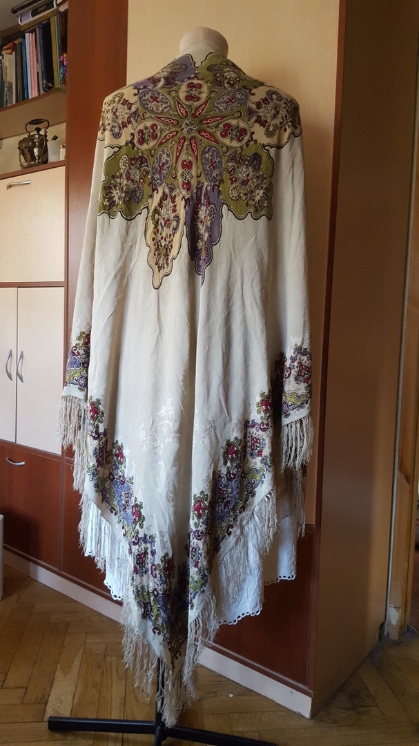 Принесла шёлковую шаль с жаккардовым рисунком и набойкой. Очень интересная