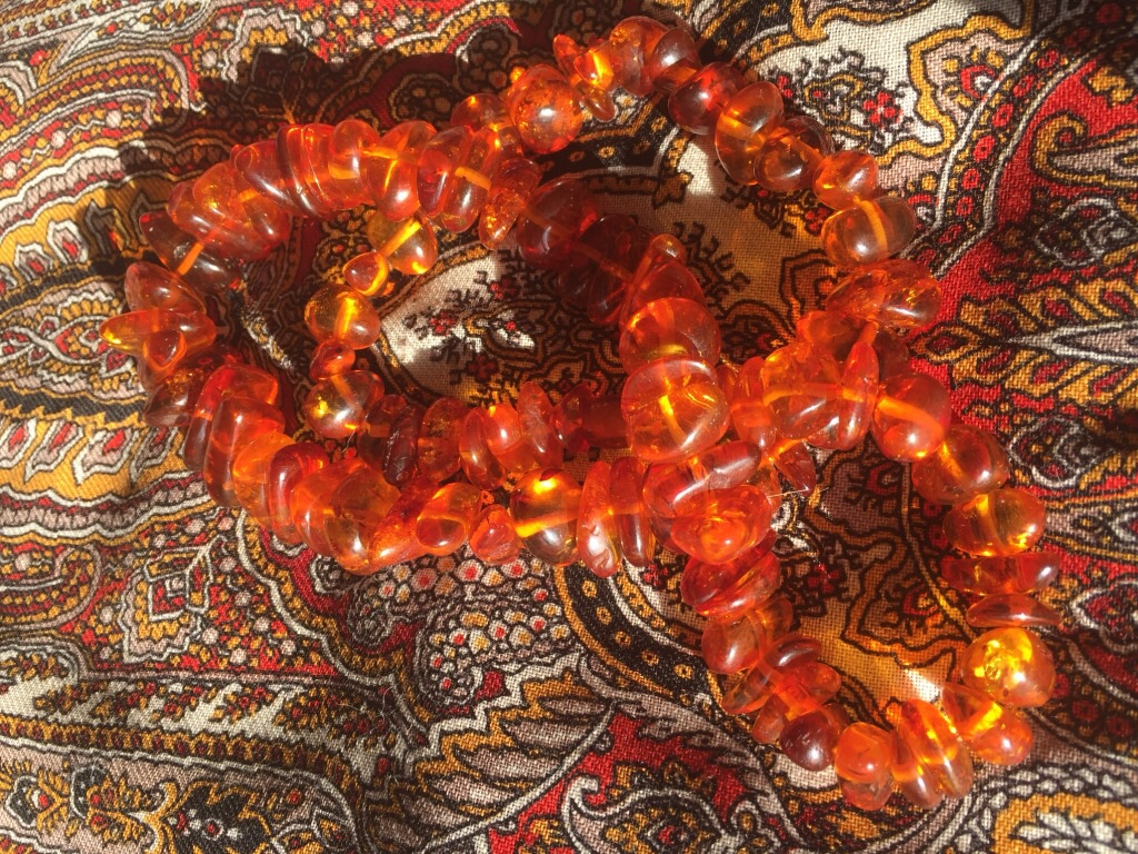 Балтийский янтарь и палантин Царский-53 Т.Сухаревской при ярком солнце.