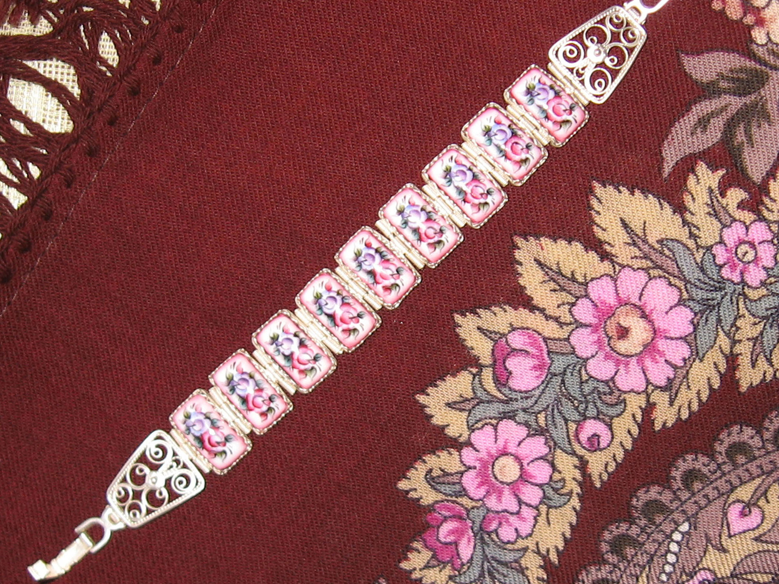 Финифтью особо не интересуюсь, есть два изделия ростовской финифти (заколка и брошь), не помню как у меня оказавшиеся (кто-то отдал, видимо). Так оба изделия в мельхиор оправлены и не серебреные. Помню школьницей была на экскурсии на заводе Ростовском, там точно не медную проволоку крутили. Да и в музее у них вроде изделия без серебрения были представлены. Более того, до сих пор пребывала в уверенности, что у финифти фон в основном голубого оттенка. Надо срочно занятся просвещением себя любимой на эту тему - я чувствую за собой упущение!