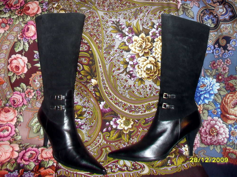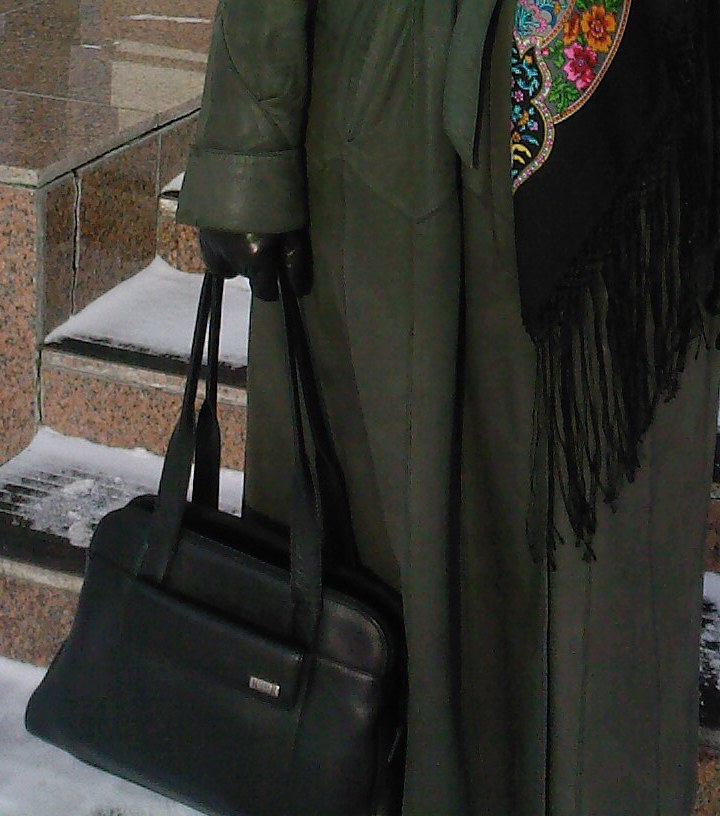 вот это шик! Сапожки и сумка в едином стиле из жатого лака черные, элегантные и ослепительно красивая зеленая "Отрада" - представляю как на Вас заглядываются на улице. Впрочем, в Вашем случае, возможности для комбинирования с платками и шалями совершенно неограничены...