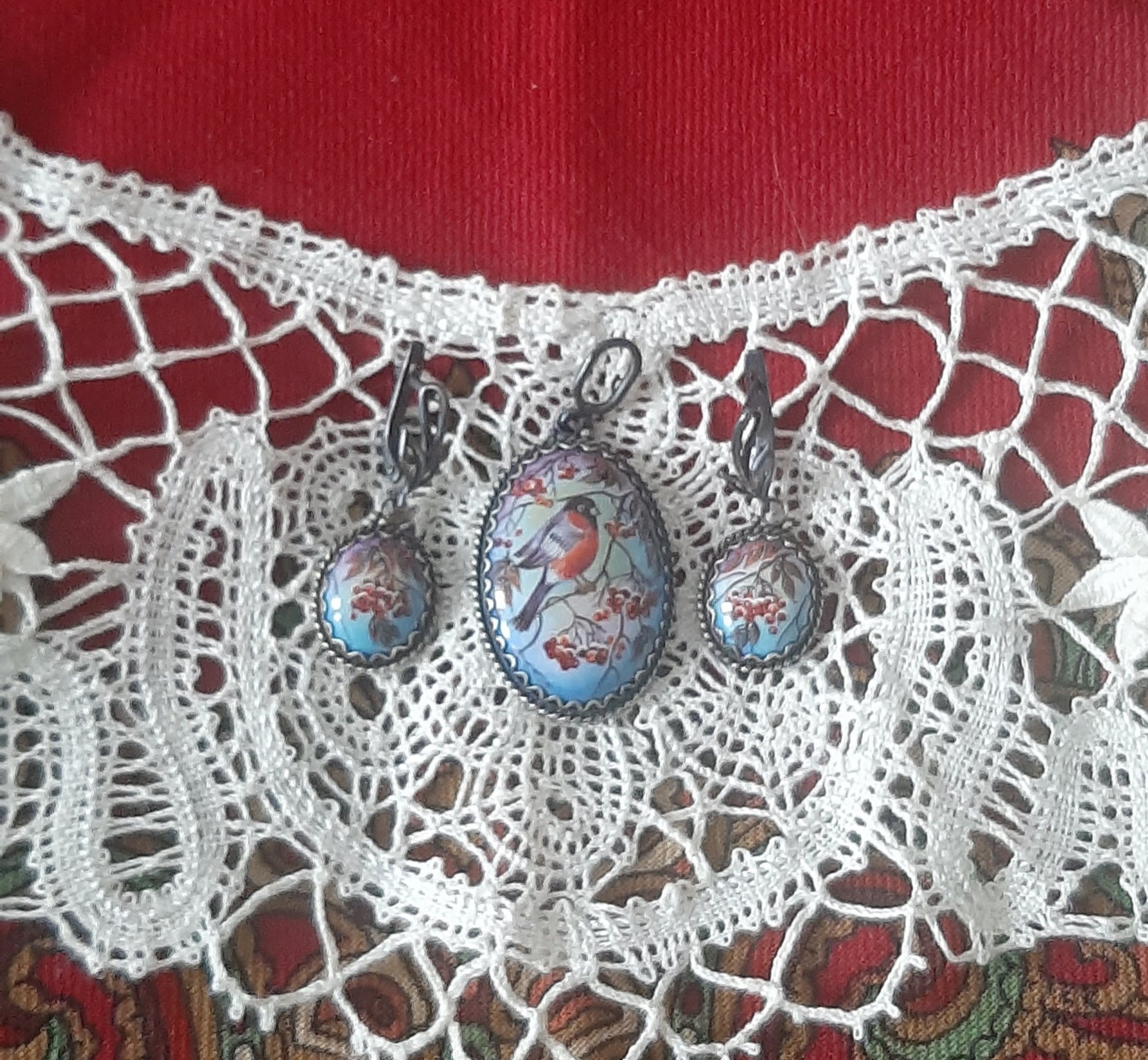 Особенно красив комплект со снигирями.