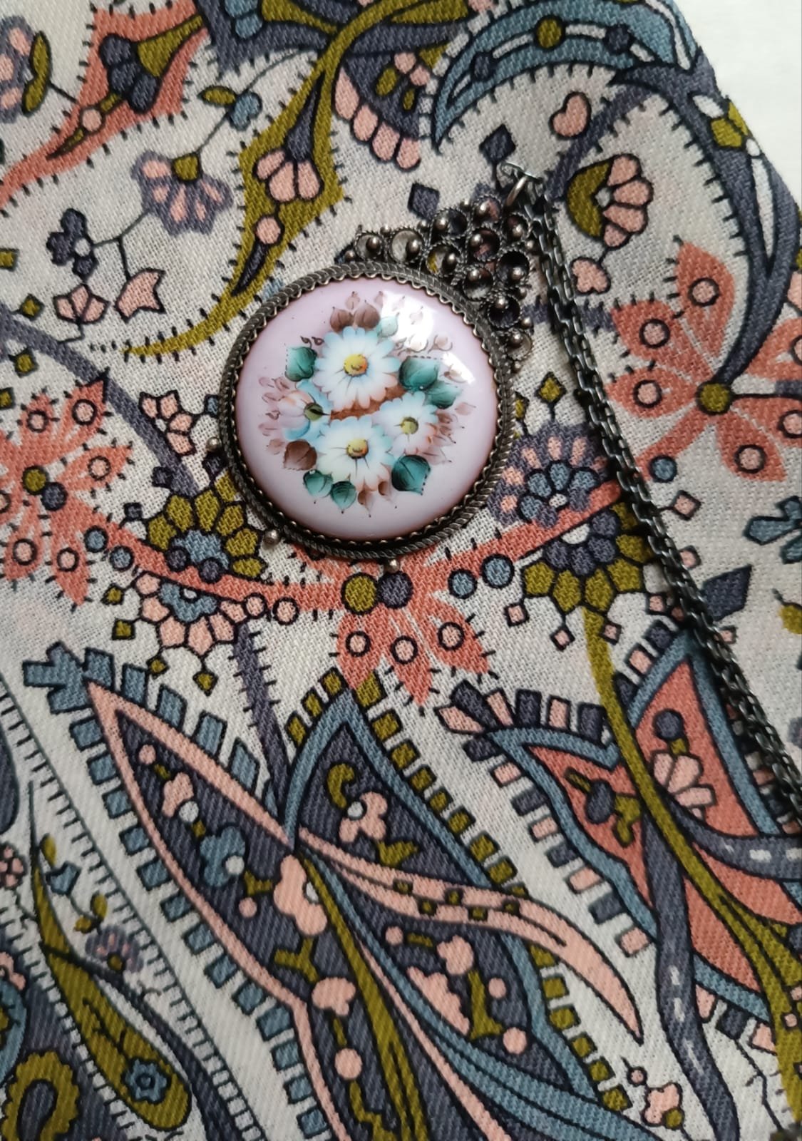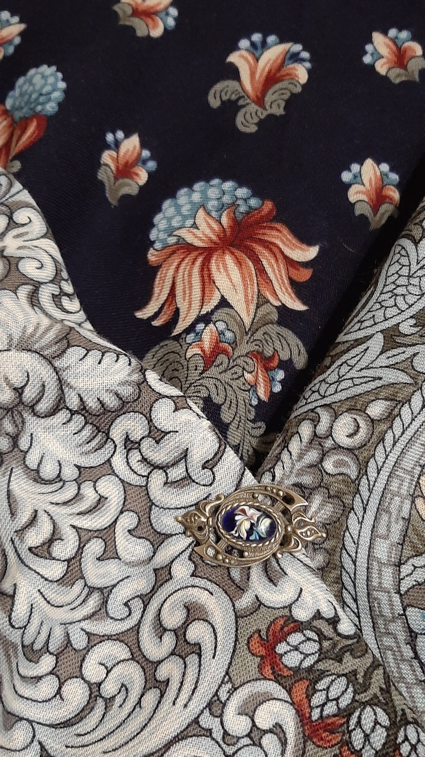 Платки не ношу, финифть же наоборот в ходу, её проще вписать в гардероб.