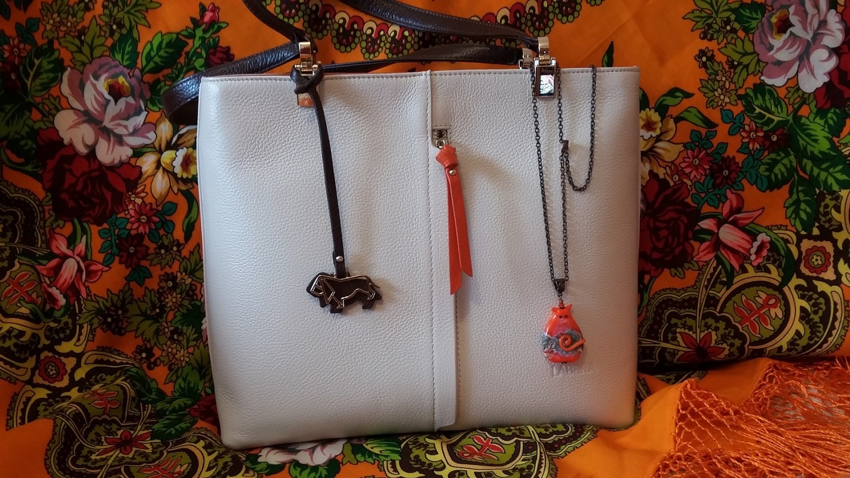 Девочки, а у меня сложился вот такой комплект с летней сумкой фирмы LABBRA и авторским кулоном из лэмпворка.