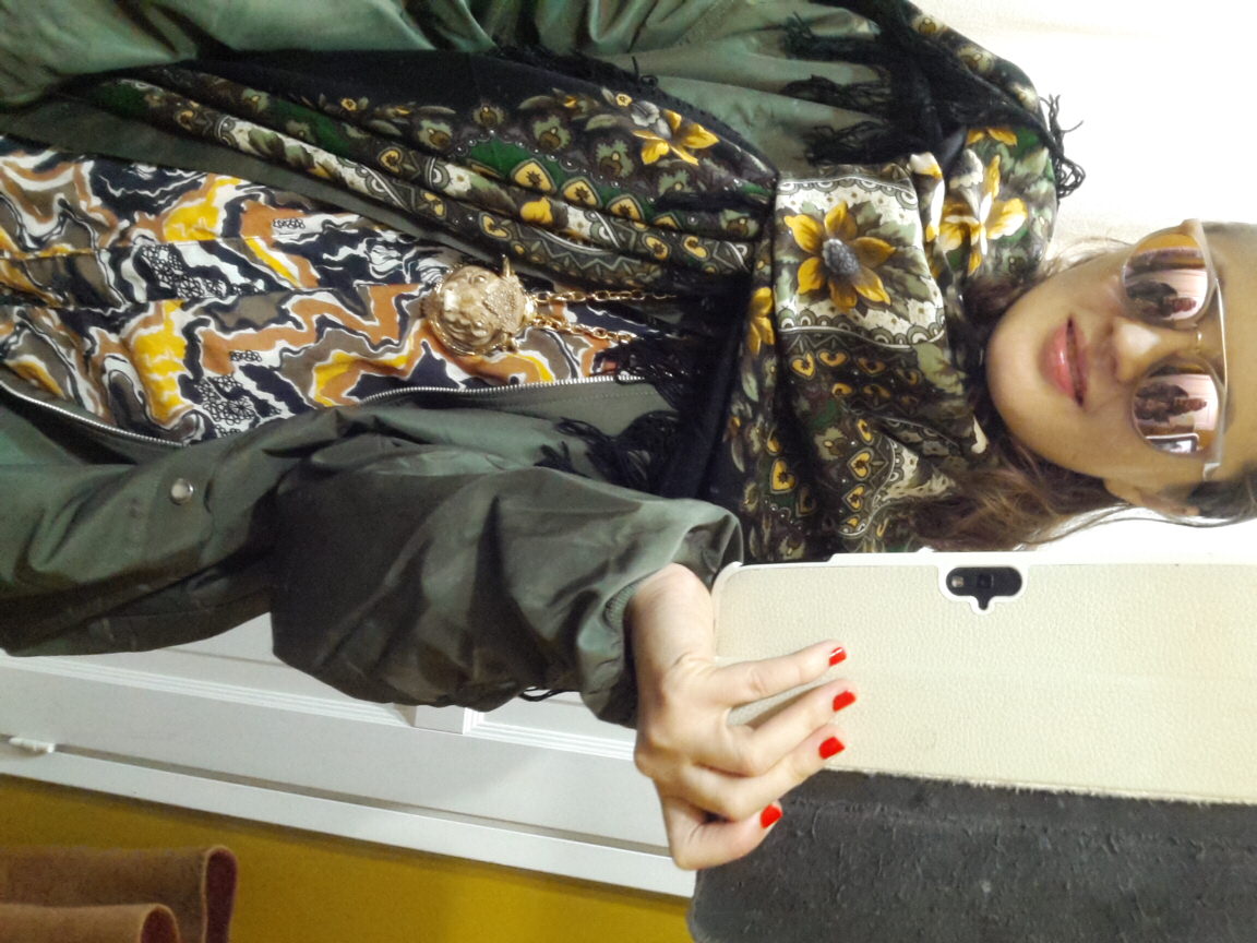 Кстати, под бомбером платье-кардиган на супатной застежке из советского шелкового крепдешина. Я от этой расцветки и рисунка с уклоном в африканская этнику в восторге, а что шили из него в советское время интересно, как обыгрывали?...