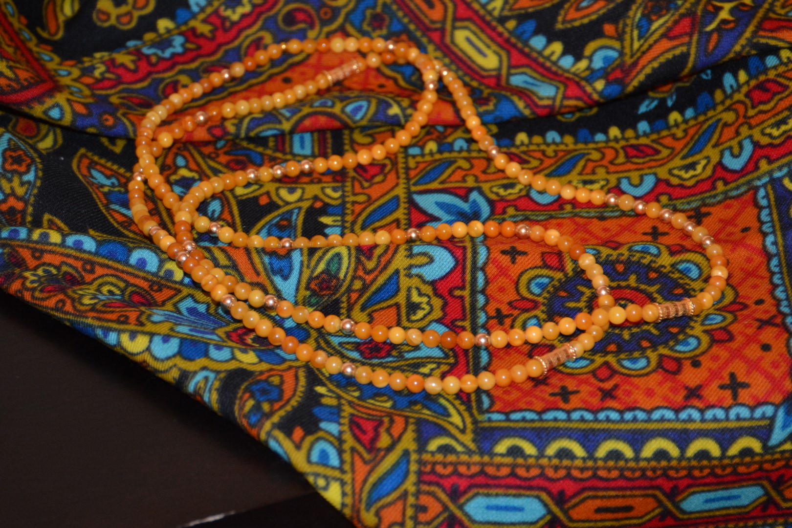 Елена Мия, маленькие бусинки это butterscotch янтарь. Я его собирала(покупала) несколько месяцев кряду. В этих бусах 4 нитки, купленные в боях . Один недостаток-почти невесомые и пришлось утяжелять золотыми бусинками.