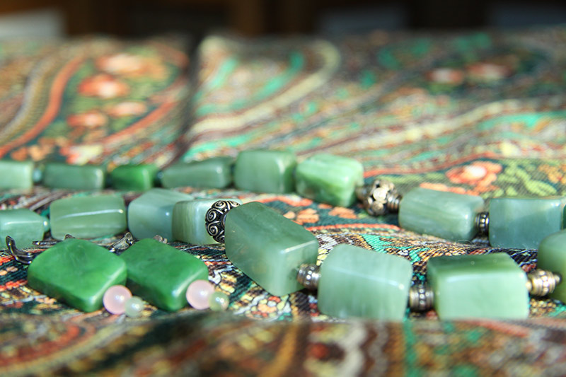 Сейчас нефрит явно растет в цене, особенно ценится камень с эффектом кошачьего глаза, т.е. с небольшой игрой и перламутровым отливом. Кстати, говорят, что нефритовые бусы хорошо носить при больном горле из-за их свойства удерживать тепло.Интересные свойства нефрита – его крепость и вязкость: камень нельзя поцарапать сталью и очень трудно разбить, и известная история рассказывает, как некогда глыбу нефрита пытались расколоть на немецком заводе паровым молотом: в итоге раскололась наковальня, нефрит же остался цел и невредим. Точно так же невосприимчив нефрит к кислотам и высоким температурам; украшения из него не требуют особого ухода и могут терпеть достаточно небрежное обхождение. Благодаря тому, что добыча нефрита в горных массивах в древности шла с большим трудом, ведь камень не поддавался привычному инструменту, добывать его предпочитали в реках в виде гальки. А свое нынешнее название, означающее в переводе «поясничный камень», самоцвет обрел во времена колонизации Америки, когда испанцы, страдавшие от почечных колик после ночей на открытом воздухе, собирали нефритовые камушки, нагревали их и прикладывали к пояснице, как грелку; оказалось, что нефрит удерживает тепло лучше, чем любой другой камень.