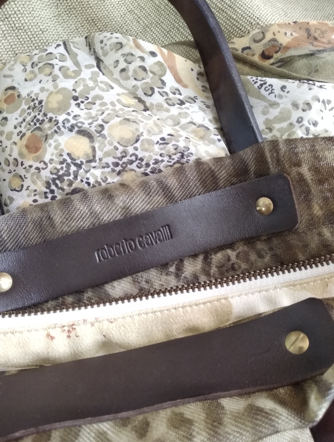 У меня сегодня старенькая сумчонка Roberto Cavalli и жоржетовый шарф Игры больших кошек А тут ещё галстук Hugo Boss вторгся на лежбище котиков со своими огурцами )