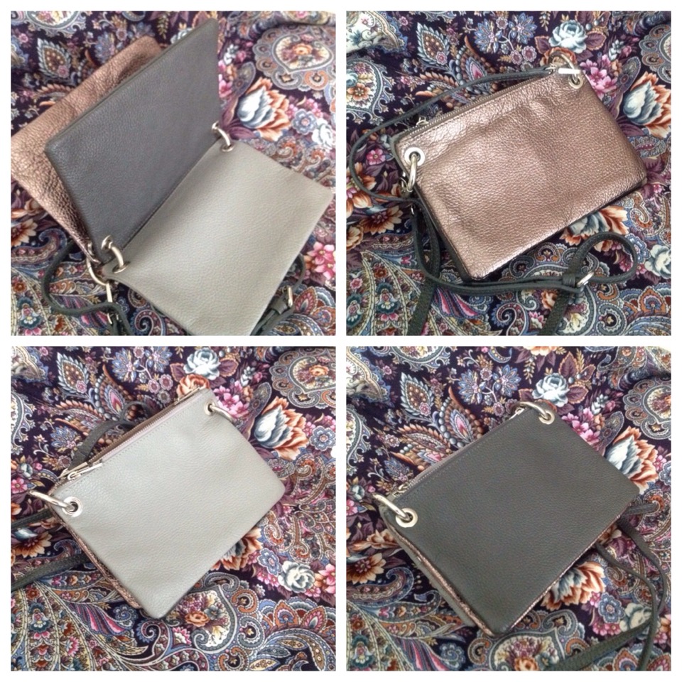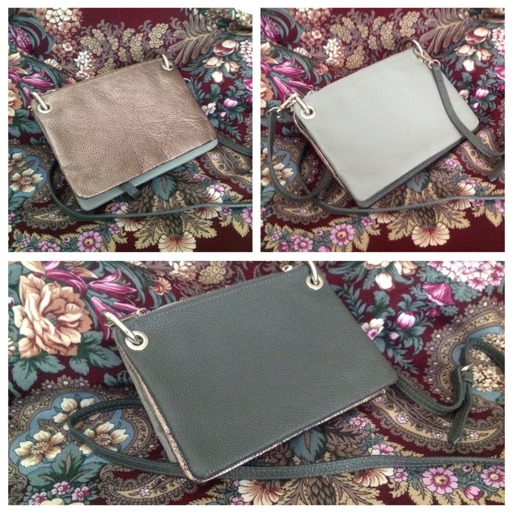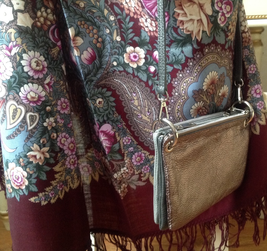 Купила сумочку 3 в 1 в итересном сочетании двух оттенков серого и насыщенной бронзы. Много сочетаний можно с ней придумать. С 2-мя платками спелась сразу.