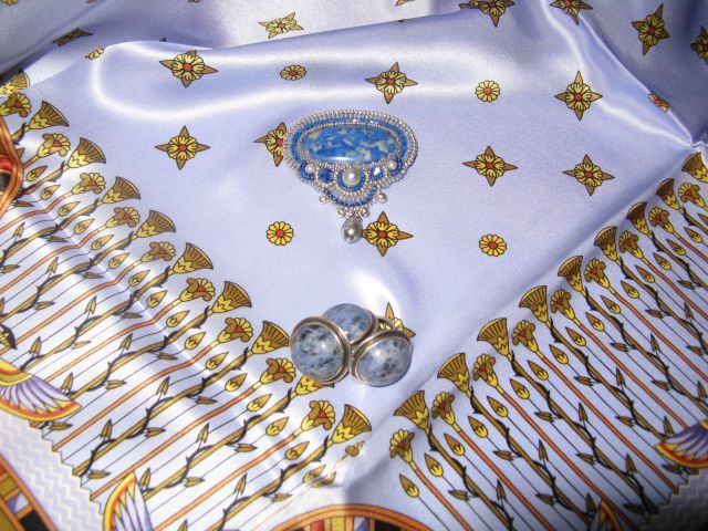 Делюсь красотой, которую творит ЕленаХ.. Как раз к моему Дню рождения прилетела сумочка и брошка с лазуритом( к ней в закромах вдруг нашелся и комплект: сережки с колечком).