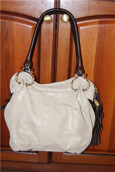 Какие красивые фото на форуме. Как интересно смотрятся яркие, разных цветов сумочки на пп платках. Прямо как тропические бабочки. Я сумки покупаю редко, ношу их долго (пока не износятся и не потеряют вид) . Сумки покупаю только из натуральной кожи или замши, цвета не яркие, практичные: черный, коричневый, красно-бардовый, а на лето - бежево-белый. А сейчас, после просмотра сообщений форума, тоже захотелось каких-нибудь ярких сумочек. Моя типичная сумочка (материал - замша, жаль, что на фото плохо видна декоративная отстрочка и ажурно оформленный верх) с пп платком "Жемчужный берег". Теперь понимаю, что это немного скучновато, надо на что-то яркое переходить...
