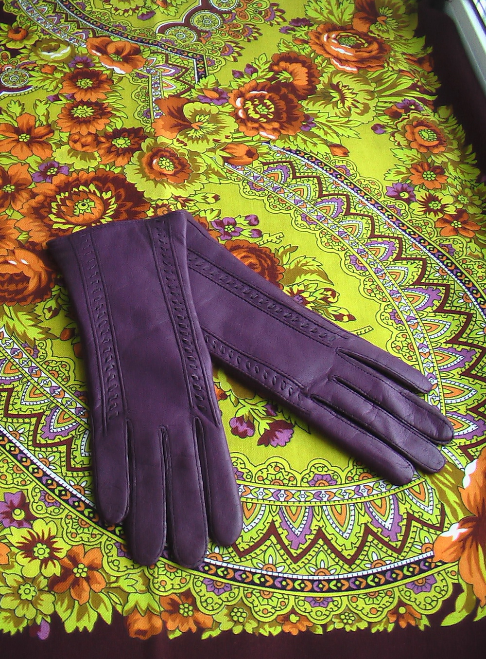 Барышни, покажу перчатки новые, заказывала в интернет-магазине gretta, качеством очень довольна. Причём качество китайских коричневых перчаток нравится больше чем оранжевых и фиолетовых итальянских. Натик ! ^% Вам большое спасибо за ссылку этого интернет-магазина, я там ещё и две сумки заказала, на днях получу. flamentoza, ^% как вы были правы, когда говорили, что под Подкову нужно очень продуманную одежду. Шаль мне очень понравилась, но она ого го какая требовательная. Не знаю чем она некоторым формучанкам не понравилась ? Если Подкову носить с оранжевыми перчатками, то акцент на оранжевые цветы, если с фиолетовыми перчатками, то на фиолетовые цветочки. Придёт сумка, тогда покажусь в Примерочной. Оранжевые перчатки точь в точь как цветы на Подкове. Фиолетовые перчатки тоже подходят ко многим шалям, но вот некоторые.