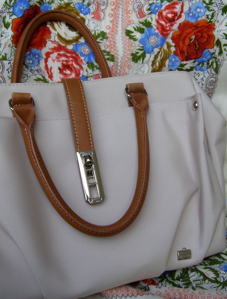 А сейчас в моде такие сумки? У меня тоже есть подобная - покупала в Париже во время распродажи. Это La Bagagerie. Очень удобная сумка! Застёжка на три ячейки, карман, в который входит сложенная карта города, внутри сумки карман с молнией и для мобильного маленький кармашек, на донышке металлические "ножки". Только пачкается быстро, но я её уже стирала.