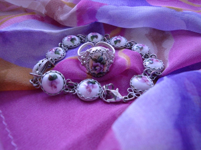 Очень простой, но милый комплект финифти - колечко и браслет- куплен в Ростовском Кремле. На фото вместе с шарфиком Чистые пруды.