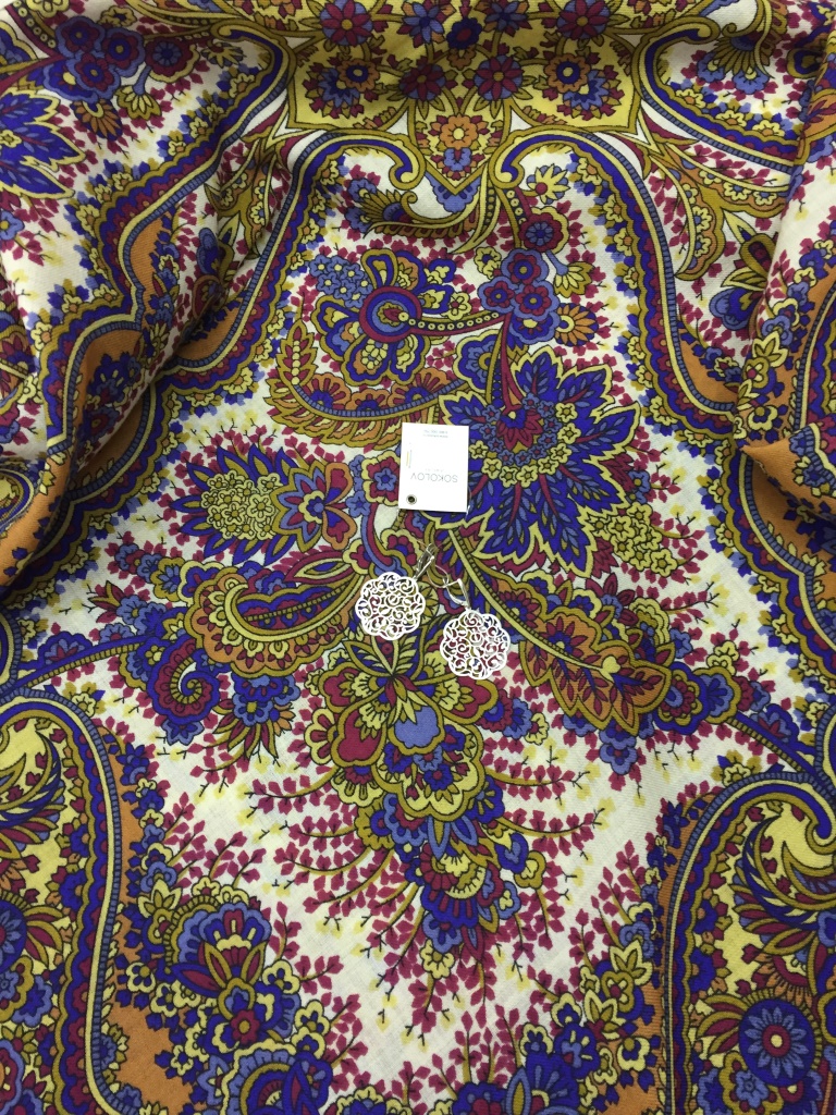 Платки Ирины Дадоновой Звуки музыки похожи на дорогие персидские ковры. Этакая закрытая роскошь восточного гарема.