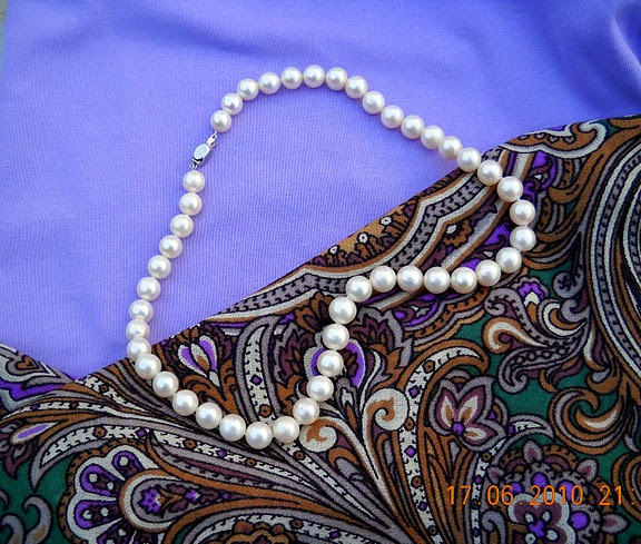 Девушки, спасибо за добрые слова! Колье с жемчужинами представляет собой серо-бежево-голубоватые (вобщем, сложный и неописуемый цвет