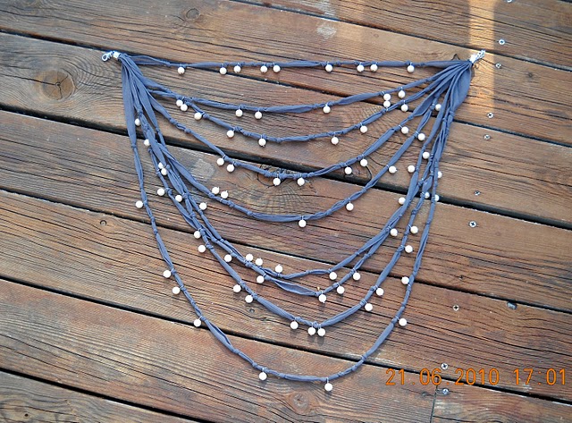 ) капроновые ленты с узелками, на которые крепятся маленькие жемчужинки. Ленты подвешены ярусами и застегиваются на шее на замочек. Завтра сфотографирую колье отдельно. (Кликните, чтобы почитать оффтопик)...
