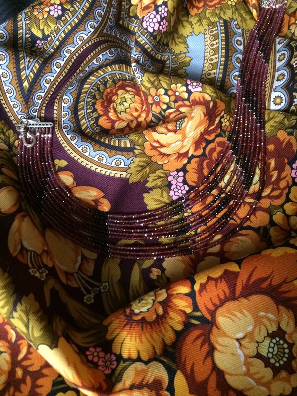 Нефрит+сердолик+стеклянные бусины лэмпворк ручной работы с платочком Вечерняя заря-19. Подходят почти ко всем мои платкам.