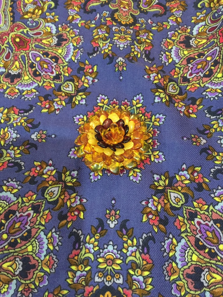 шаль Богатая невеста-14 и брошь-кулон из янтаря