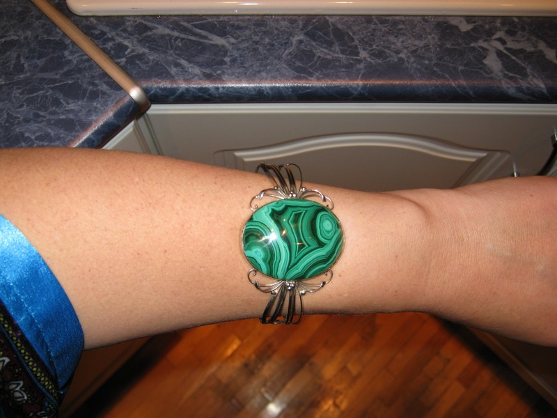 фуллерен, лягушатки забавные, но МАЛАХИТОВЫЙ БРАСЛЕТ!!! :: Красивый рисунок камня. Покажите на руке, пожалуйста.
