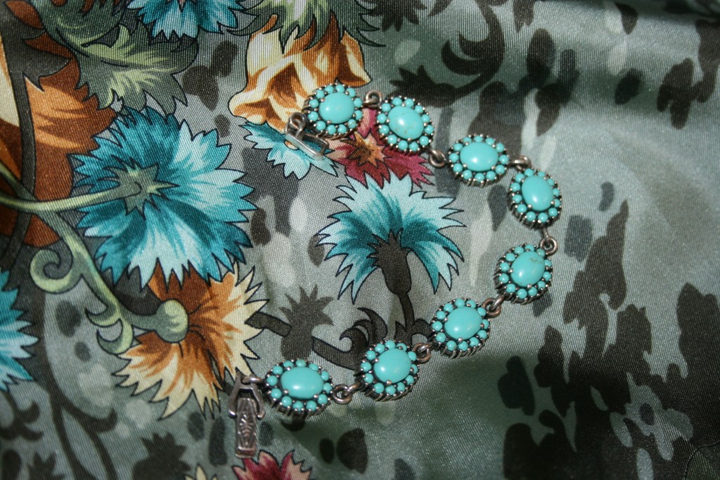 достала свой браслет из бирюзы привезенный из Мексики и бусы