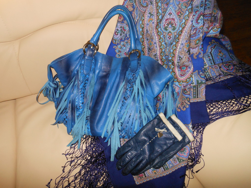 Из моей обширной сумочной коллекции, эти тона синего цвета практически под все мои синепольные платки подходят, в реале темнее