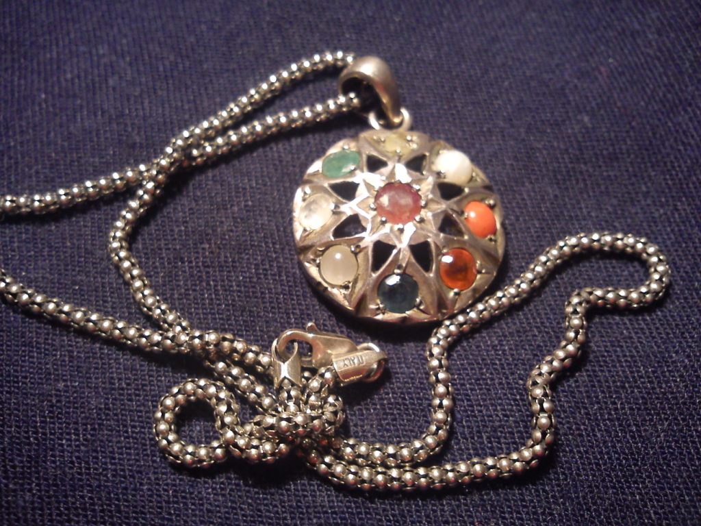 Про подвеску. По стекляшечкам она похожа, как я и говорила, на английскую фирму Миракл, но разделка металла проще и цепь совершенно не их