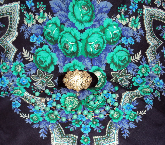 Зарина, спасибо! Всегда приятно видеть ваши новые сообщения. Скань так замечательно сочетается с рисунком платка и с бирюзой. А бусы гармонируют со всем комплектом.