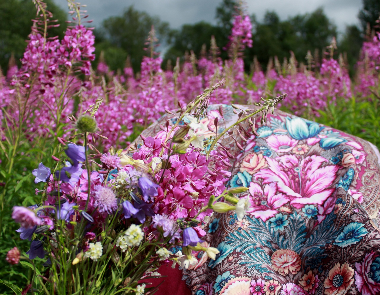 Гармония природы и узоров на платке.