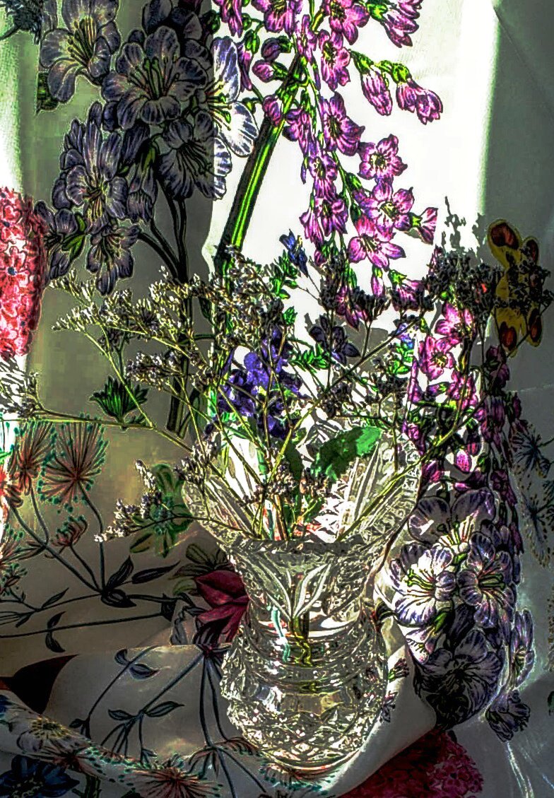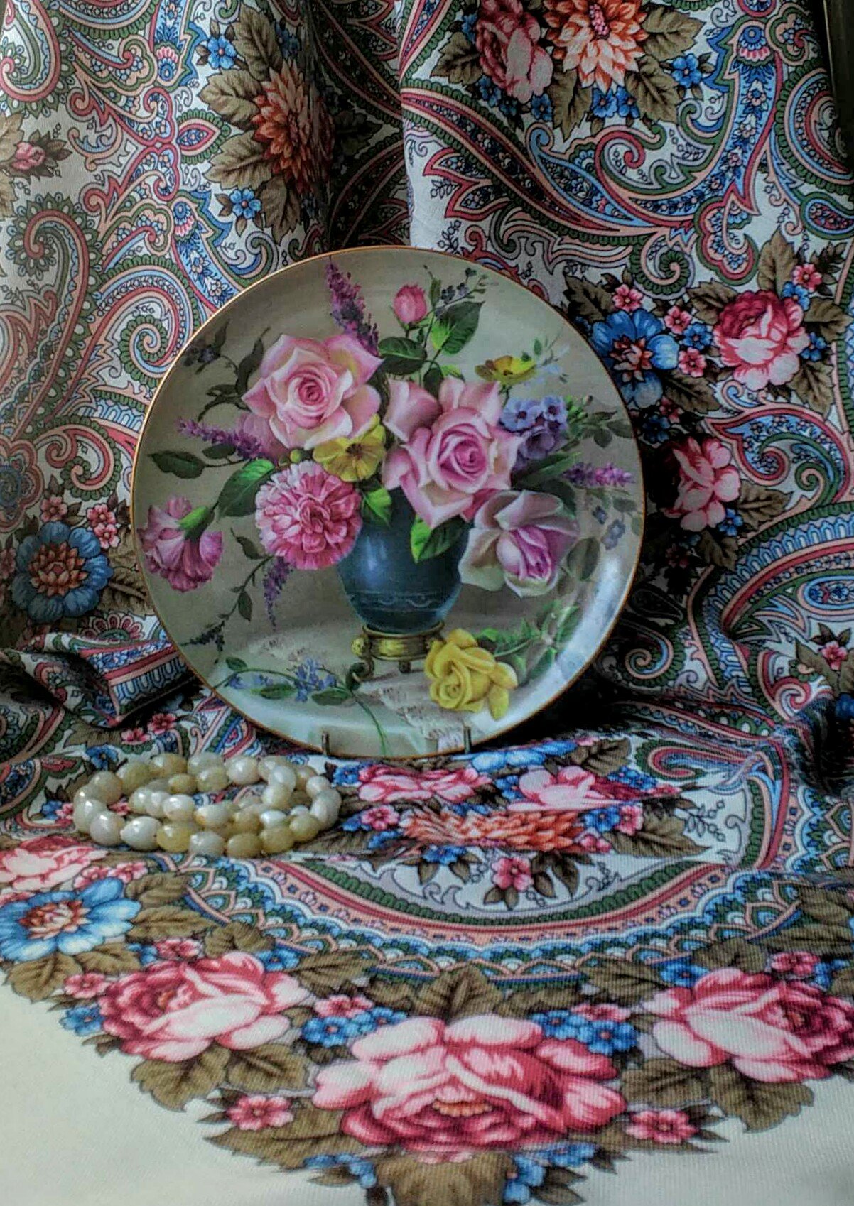 Добавлю летнее белое фото в "белую" тему. Прекрасный графичный белый платок с рыжими розами Фея сирени 2