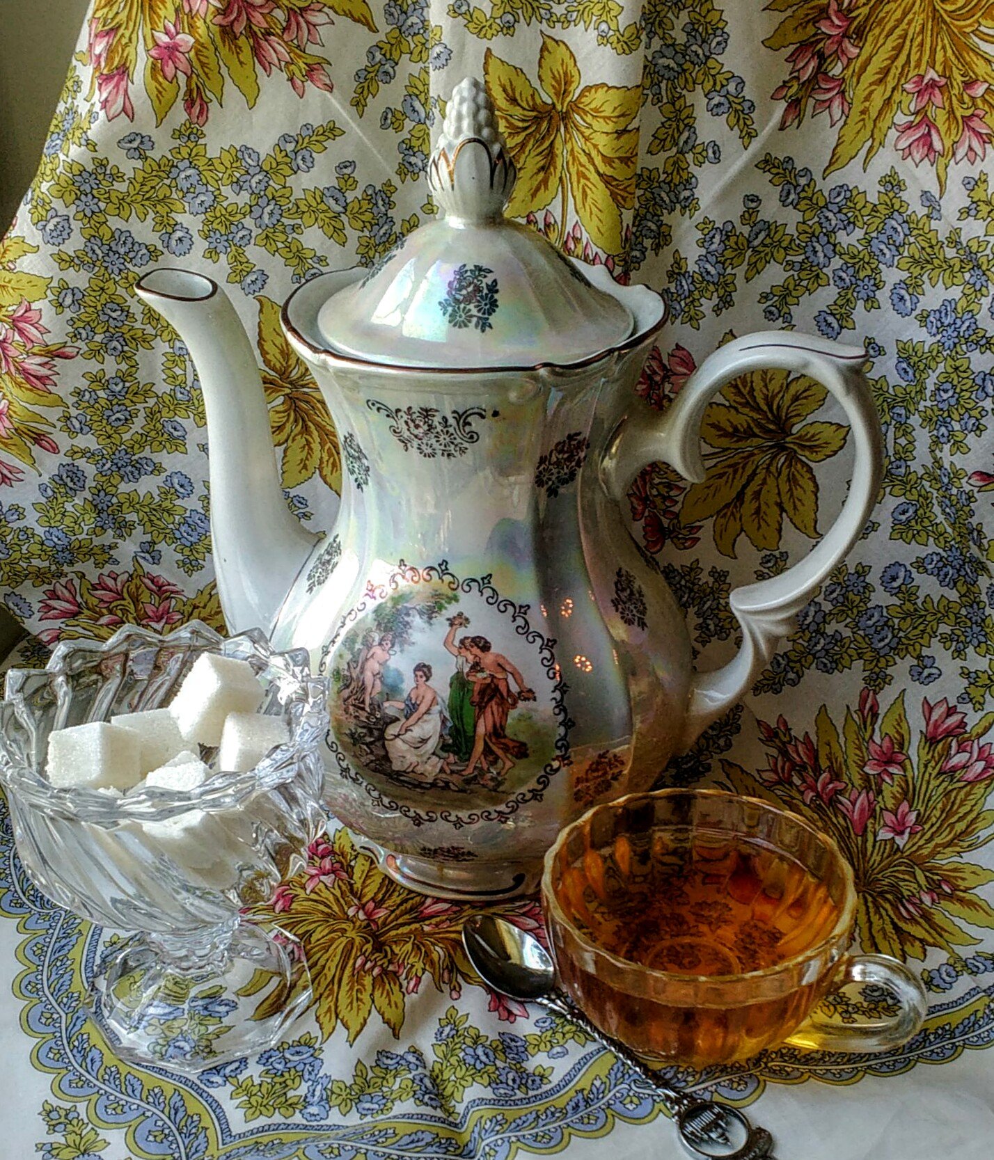 Платочек х/б батист Там, где звёздочка упала, 0 колорит Т.Сухаревской и чайник Мадонна